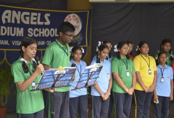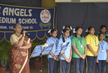 The school Principal Smt. Visalakshi addressed the students and told them how they can improve their knowledge of Hindi language.