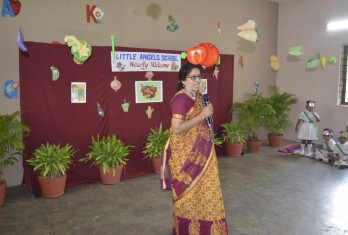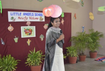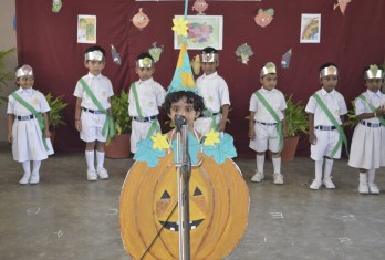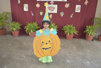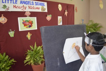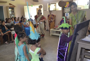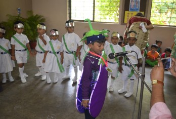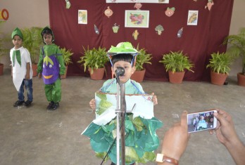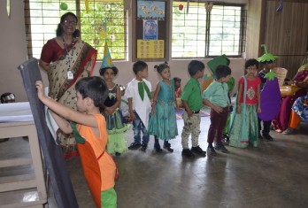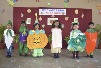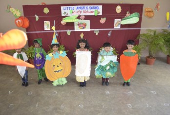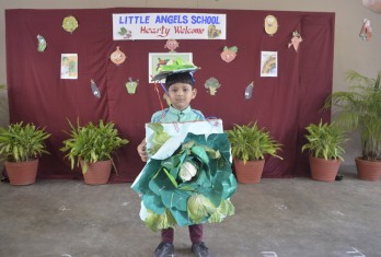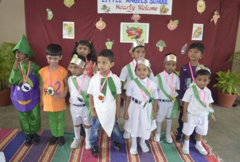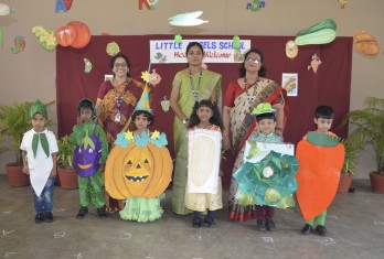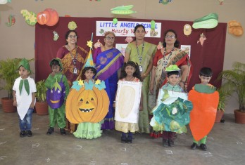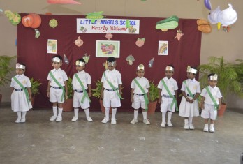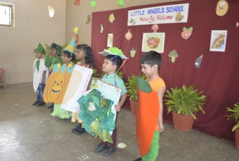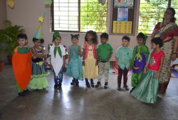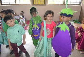 Kids dressed in vegetable attire, described the value of vegetables. Students of LKG presented a dance on vegetables.