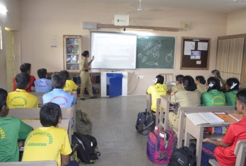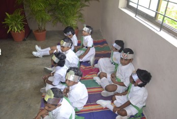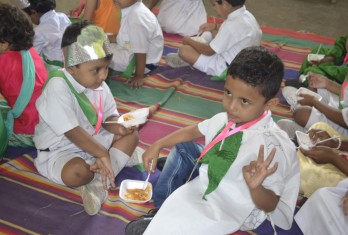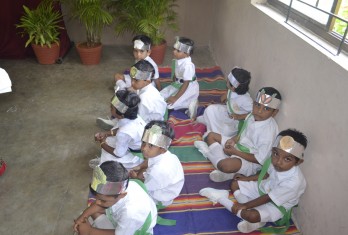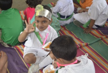 The children of classes 3 to 7 brought exclusively vegetarian food for lunch. They ate together in groups depending on the highest nutrient contents in their diet (Carbohydrate, protein etc) and enjoyed their afternoon meal.