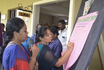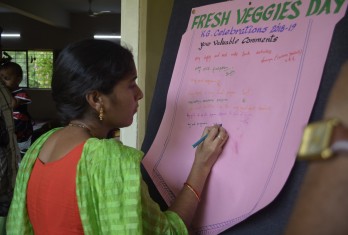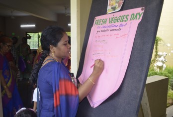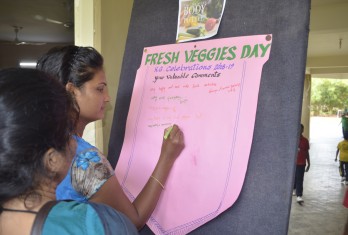 To make the day more delightful, a competition was conducted where the little kids identified the vegetables and coloured the same.