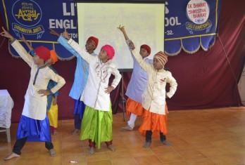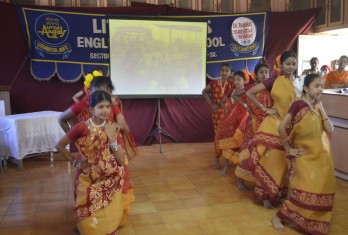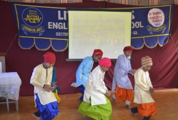 Students enjoyed the colourful folk dances of Punjab and Andhra Pradesh - 'Bhangra and Dhimsa' presented as a part of the skit.