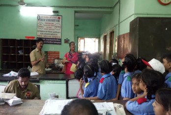 The staff of the Post Office demonstrated the process of sorting and stamping of the letters. Students were also shown inland letters, post cards and various stamps.