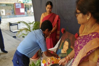 As a part of the occasion, a special assembly was conducted by the students.Floral Tributes were paid to Smt.Indira Gandhi by Principal Smt.Visalakshi, the HM and the student council.