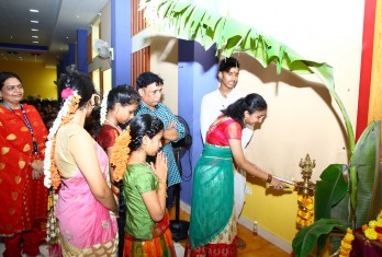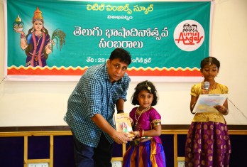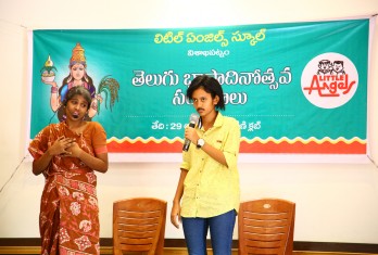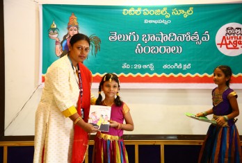 Telugu Bhasha Dinotsavam was celebrated on 29th August in Little Angels School by Tarangini Club. The programme started with the inauguration of the food exhibition in which different food items belonging exclusively to the telugu cuisine were displayed by the students of classes 6th to 10th. The scientific essence of all these traditional foods was well-explained and highlighted by the students. This “Food” exhibition was worth laudable and was applauded by the school founder Sri M. Venumohan as the items were home-made and displayed. Students were allowed and given an opportunity to buy these food items. The celebrations of the Telugu Bhasha Dinotsavam commenced in the auditorium with a good start with the traditional telugu dance (kuchipudi) performance given by students of Class IX. It was appreciated by all and served as a great delight to the eyes of the audience. It was followed by the lighting of the lamp and garlanding the portrait of “Telugu Thalli”. An article on the ‘Greatness of Telugu Language’ added to the essence of the programme. There was a dance performance by the students of class 10th which added beauty, flavor and colour to the programme. “Even though you learn many languages, you should never leave your mother tongue” said the founder of the school in his speech. The students of 10th exhibited their talent in a heart-touching play “Amma Prema” which made everyone emotional. It is indeed not at all surprising that the students were successful in giving their message as they could connect the audience emotionally to the play. The most successful and attractive event of the entire programme was “Padhyala Thoranam” in which students were asked to recite a “Padhyam” with the ending letter of the preceding one. This event enlivened the audience gaining the applause of one and all. Students who participated in the various competitions conducted by Tarangini Club and displayed their excellence were given prizes by the Founder, Secretary and Correspondent Sri M Venumohan. The members of Tarangini club were appreciated for the wonderful programme they have put forth and their hard work. The entire programme was a grand success which was as entertaining and informative as well.