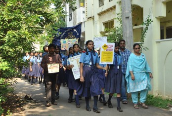 The rally was flagged off by Science teachers, PET’s and other subject teachers. The students carrying placards and banners marched through the main streets of sector -3. The students read out slogans and urged people to keep their surroundings clean, free from mosquito breeding sources, to clean the tanks and close the water storage containers, to wear sleeves and cover their body, using mosquito coils, nets and rollers on fabrics. Students said that preventive measures were the best way to keep away the disease.