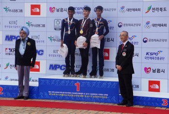 The 18th Asian roller skating championship held at Namwon, South Korea from 4th September 2018 to 14th September 2018,in which 19 countries participated with more than 1000 skaters. Hari Kamal’s competition is known as compulsory figures which were held on 5th September with 11 competitors where Hari Kamal stood 3rd among them.