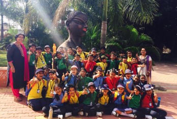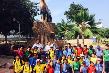 The students of class 3rd were taken to Jatara ( Shilpa Ramam) which is a beautiful picnic spot near Pothulamallayapalem. The children were given lot of time to bring out their energy in playing various games. The whole place was filled with children who were looking very colourful in their sports uniform. They were taken around the area to have a glimpse of the various sculptures. Children were getting overwhelmed and surprised to see the art and culture of Andhra Pradesh. The children enjoyed as well as learnt a lot when they were looking at the wonderful area.
