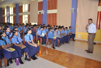It was a day of Inspiration for students when Cdr. B. Amar Deepak an alumnus of our school visited and motivated hundreds of students. He was nostalgic and recollected the days when he joined the school way back in 1993. Though he was a student of the school only in Class 10th, he had a lasting influence on him. He appreciated the discipline which was inculcated in him here. He advised students who were interested in joining Defence and Navy to have core principles in life such as responsibility, courage, integrity, honesty and gratification. Children should aim high and while reaching it they should not fall to fallacies. Being compassionate is the greatest quality one should have.