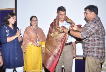 Founder Chairman Shri M. Venu Mohan, was very happy about the reunion of alumnus with the school. He congratulated Cdr. B. Amar Deepak on his success and said that he was in school for only 1 year but today he came back to express his gratitude to school which influenced him so much. He said school provides opportunities to children and when they become successful and come back to school, he takes pride in felicitating them Mrs. Sunitha another alumnus also was present on the occasion. Cdr. B. Amar Deepak and Mrs. Sunitha were felicitated by the Founder, Chairman Shri M. Venu Mohan.