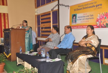 He was nostalgic recollecting all the good work he had done as the Vice-Chairman, VUDA. He felt happy to know that all the children are enjoying the beautiful places like Kailasagiri, Rope way, Health Arena which were started in his tenure. He appreciated the students for coming up with good questions like how do you want people to be in the society ? Are you satisfied with your service to the society ? How do you continue the optimism towards work even till date ? etc.