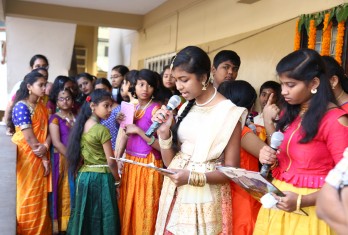 Pongal is a harvest festival, a traditional thanks giving occasion to nature. Pongal was celebrated at Little Angels School on Wednesday, 9th January,2019 with much gusts and enthusiasm. The day started with invocation to the almighty followed by lighting the lamp. Blue house organized a plethora of programmes including article on importance of festival, popular folk songs by Primary & Secondary students and greetings in different languages was also a highlight. Students dressing up as ‘ Haridasu’ was another special attraction. Students came in their traditional dresses and exhibited joy and pride as they filled the campus with the land’s cultural aura. Mr. M.Venumohan encouraged everyone to know the significance of Pongal to imbibe, adhere and to uphold the traditional values.