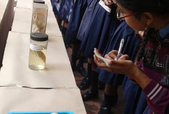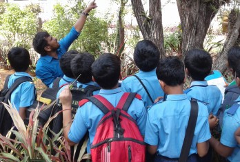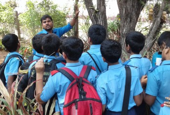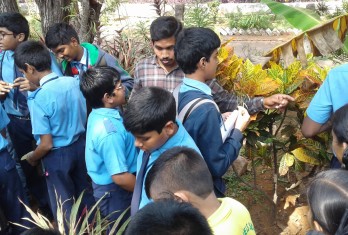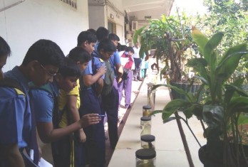 Later, students visited ‘Department of Botony’ where they have seen all the rarest species of plants preserved in “ Herbarium”. They were also taken to the botanical garden where different plant species were observed. They enthusiastically learnt the scientific names of gold detecting plant, Cocoa plant and mosquito repellent plant and many other plants.