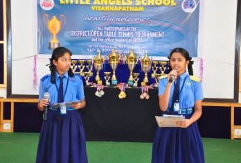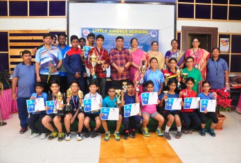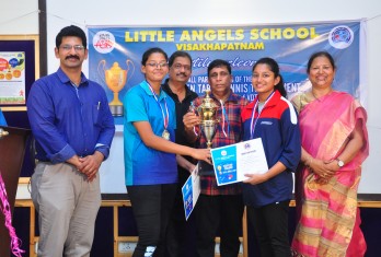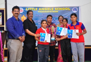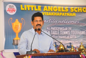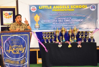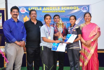 Little Angels School has added another page in the annals of its illustrious history by throwing its gates open to the young players of Table Tennis of the city. A two day Little Angels Cup Tournament was conducted in the school premises on 16th and 17th of February, in association with the Visakhapatnam District Table Tennis Association(VDTTA). The maiden effort was greeted with enthusiasm and as many as 20 schools participated. The individual participants were more than 300, a record of its own. Matches were conducted for boys and girls in mini cadet, cadet, sub juniors and juniors categories. In the inaugural function, the Founder Chairman of the school, Sri M.Venumohan declared the tournament open in the presence of VDTTA Secretary, Sri D.V.S.Y. Sharma. The participants competed with enthusiasm to outshine one another. The matches were conducted fairly with 5 umpires and 3 referees monitoring them. In the Valedictory function organized on 17th February, the prizes were given away to the winners. Sri. J.K.Nayak, President and Sri D.V.S.Y. Sharma, Secretary of VDTTA graced the occasion. The Founder Chairman, Sri M.Venumohan advised the parents to recognize the kinesthetic skills of their children and suggested the students to start early to practice a game. The Director, Smt M.Ranganayaki congratulated all the winners.