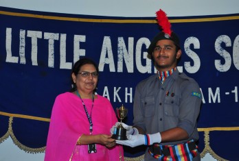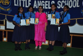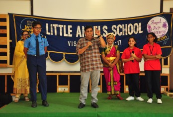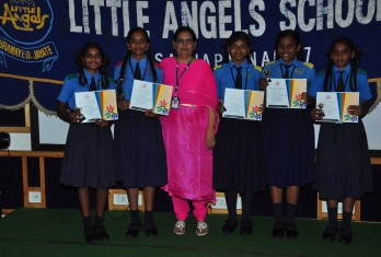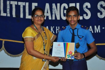 The programme on the first day by and large covered prizes in academics and arts - Olympiads, Asset, Inter-house competitions, Music, Art, Dance etc. More than 250 prizes were given away on day 1. Speaking on the occasion, the Founder & Chairman Sri. M.Venu Mohan emphasised on the paramount need to inculcate the quality of punctuality among students at a young age. He inspired the children to have cutting edge over others to realize their true potentiality and get ready to face the world. He also said that Little Angels is very unique in creating an ambience for sports and games as an integral part of education. Recalling the contemporary sports celebrities like M.S.Dhoni and P.V.Sindhu, he exhorted the students to take up sports enthusiastically. He proved his magnanimity by sponsoring two cricket kits for the under privileged children of “Generation Yuva” and SOS village.