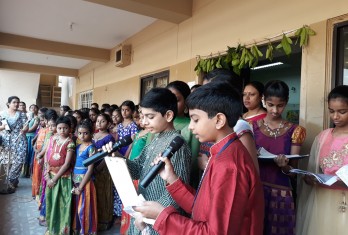 The programme began with a melodious prayer song and was followed by special songs marking the occasion. An article on the prominence of the festival and specially the ‘Ugadi Pachidi’ which is a combination of flavours made the students know the scientific reason behind celebrating the festival.