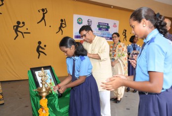 On 29th August 2019, Valedictory function was organised, the Founder & Chairman Shri M.Venu Mohan, garlanded the portrait of Shri Dyan Chand.Kum.DevakiNandana of class 4, a Chess player was felicitated as she bagged a Silver medal in the Nationals at Ahmedabad. Speaking on the occasion the Founder & Chairman congratulated Kum.DevakiNandana on her success and he announced a gift of Rs.5000/- to encourage more and more students to participate in the Sports. He added that the management always encourages students to be active participants in various Sports & Games conducted in the School. Many students who are playing regularly have expressed their gratitude to the management for providing the best facilities and the best coaches and PETs to encourage sports and games.