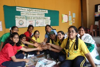 Activity – 3 In collaboration with Green climate group, NGC and Science club students enthusiastically participated in preparing clay idols by inserting custard apple seed while preparing the mould.