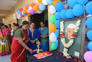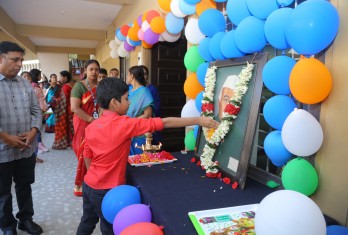 On 14th November, 2019 a special assembly programme was organized which started with a prayer song. The portrait of Jawharlal Nehru was garlanded by the Founder and Chairman and offered his tributes. The Principal, Ms. Nafeesa Begum and Smt. Indumalini, the Headmistress offered floral tributes. Speaking on the occasion the Founder and Chairman said that he strongly believes in the statement that, ‘Tomorrow’s World is built in the class room today.’ He asked the parents to recognize their child’s potential.