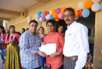 Sri Charan of Class VII Topper was awarded a Merit Scholarship instituted by Mrs. Madhavi.