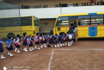 The children were very excited to get into the bus. On the way they sang song, recited rhymes, clapped their hands and laughed with joy.