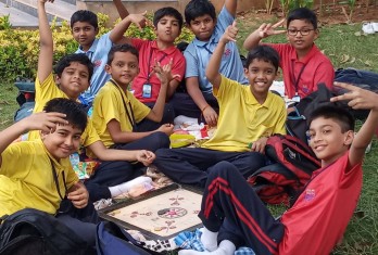 The yellow school buses fully packed with students of class 5 and teachers headed to the central park for a picnic on 22.11.2019. The students were extremely excited. They kept singing in the bus till they reached the venue.