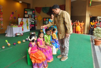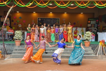 A doll show known as “Bommala Koluvu” showing different dolls was the centre of attraction. The Punjabi culture was also displayed on the other side of the stage with some pictures, chulha and a variety of food items. Children dressed in traditional attire of Andhra and Punjabi style have made the event very colourful Songs in Telugu and Punjabi highlighted the programme.