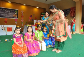 Unity and diversity and diversity in unity is symbolic of India’s identity. Little Angels has been a platform to prove this by celebrating Sankranthi and Lohri together on 7th of January with great pomp and show. The festive atmosphere enthralled the audience for about two hours. The stage was decorated with various festoons of these festivals. The traditional festivity intensified the celebration.