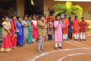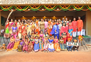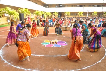 Bonfire and rangoli display were the attractions of the event. Bonfire signifies the beginning of Sankranthi and Lohri as both are harvest festivals. A colourful rangoli with gobbemmalu exhibited a village atmosphere. A melodious song with the traditional dance by the gorgeously dressed girls around the gobbemmalu was the most appealing part of the programme.