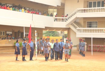 The student Chief Guest was K. Kartikeya of Class 10th who has scored 98.91% in the Periodic Test-1 (2017-18). He had the honour of hoisting the National Flag and in his speech he thanked the School Management for providing all facilities which is instrumental for the overall development of a child.