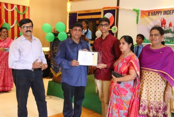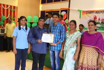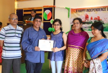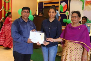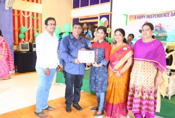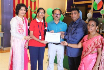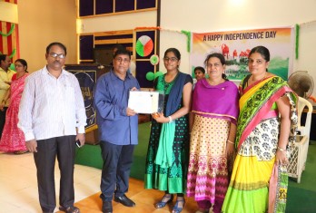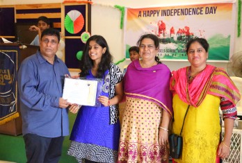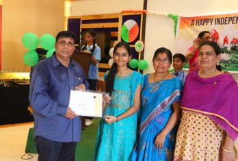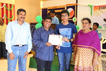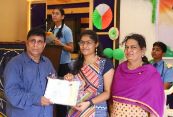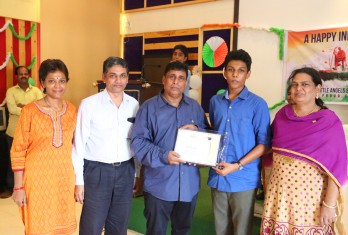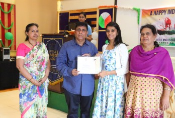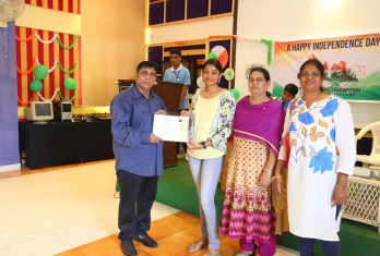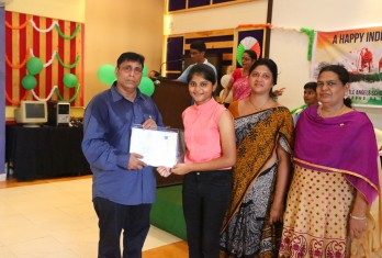 On this patriotic day students showcased their singing and dance talents in a spectacular manner. Total 54 students were given cash awards and Merit Scholarship Certificates by the School Management for scoring 10/10 CGP in the AISSE (CBSE) & SSC Public Examinations - 2017. 45 students were from CBSE stream and 9 students from State Board.