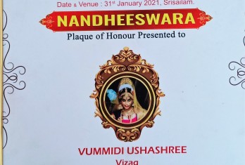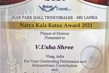 In 2021, Ushashree got the opportunity to take part in ‘Bharatiya Nrithyotsav’ held in Srilanka. She has received a ‘Certificate’ and an ‘Award’ for her Bharat Natyam performance.