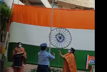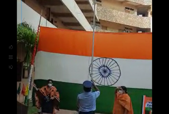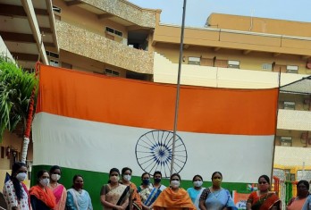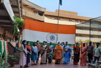 Principal Ms.Nafeesa Begum unfurled the National flag, followed by National Anthem.