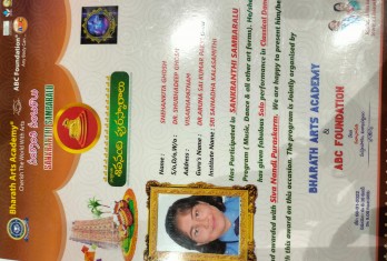 Snehankita Ghosh of Class 10 A has been awarded with “Siva Nandi Puraskaram” for her fabulous solo dance performance in the ‘Sankranthi Sambaralu Program’. The event was organised by Bharath Arts Academy and ABC Foundation. She has been felicitated with a trophy and certificate for her performance in the field of classical dance -Kuchipudi.