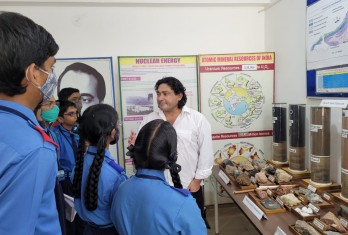 We were all led to a room in one of the 2 buildings. There students of a few other schools were already seated. Within a few minutes, we all received a welcome kit which contained an info sheet, a notepad and a pen and a cap. Having nothing else to do we browsed through the info sheet. It contained in a brief manner, how and what the AMD (Atomic Minerals Directorate for Exploration and Research) does. When all the participants finally arrived, we were introduced to the guests and informed about our itinerary for the day.
