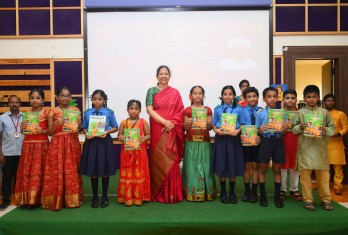 The celebrations began with chanting of vedic mantras, ceremonial lighting of the lamp and garlanding the portrait of “Telugu Thalli” by the school Founder and Chairman Shri M.Venumohan and Director Smt. M. Ranganayaki.