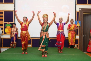 The day was celebrated in a traditional way with cultural performances put up by the students. The programme was a blend of songs sung by a group of students, followed by Kuchipudi dance performances by the students which completely enthralled the audience present in the auditorium. Students displayed their talent and skills in Telugu language speaking skills by reciting poems and speech on the importance of Telugu language.
