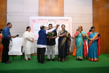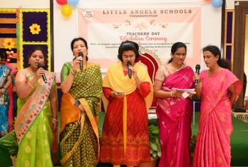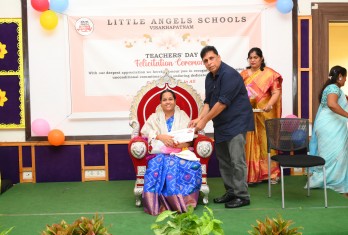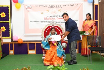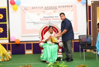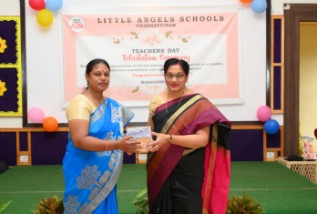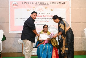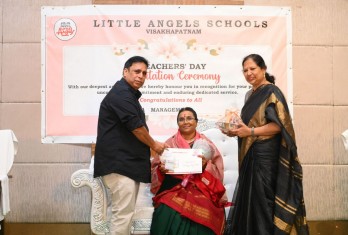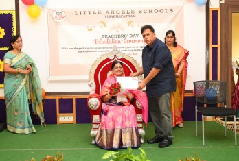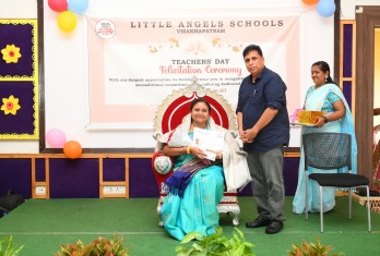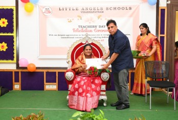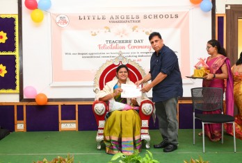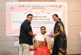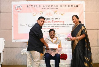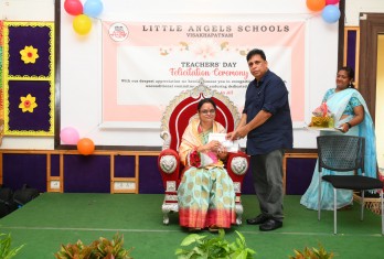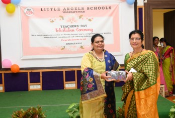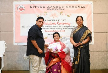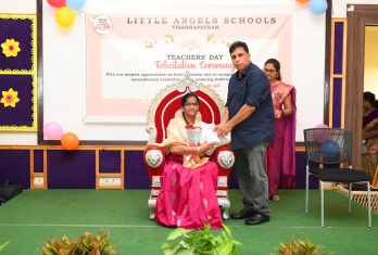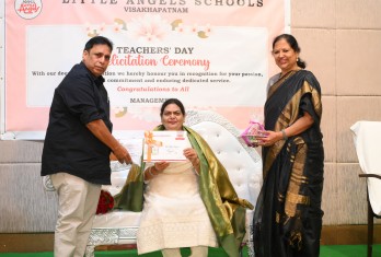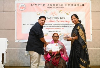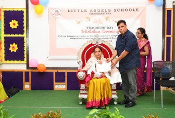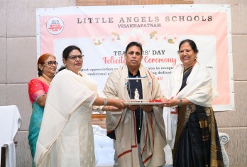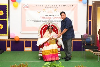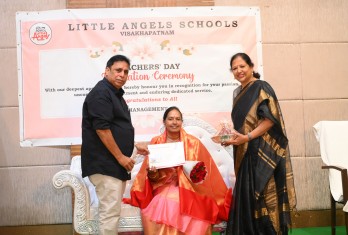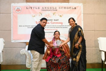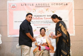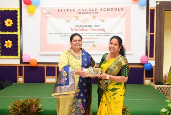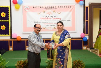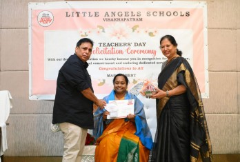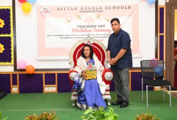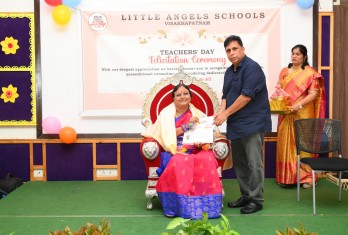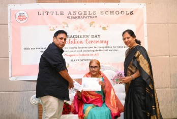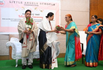 Later, 13 teachers including academic heads were felicitated who have completed 35 years,30 years and 25 years of service in the institution. Standing tall in the list of the felicitated is Mrs. N.V.S Laxmi Rajyam who has completed 35 years. The most experienced teachers of Little Angels School shared anecdotes from their journey in Little Angels School and thanked the management of the school for recognizing and honoring the work of the teachers. Chairman Sir congratulated all the felicitated teachers in his speech and wished that the young generation of teachers imbibe the work done by the senior teachers.