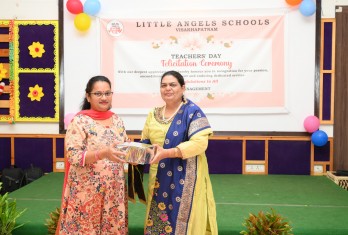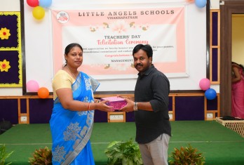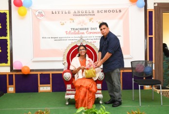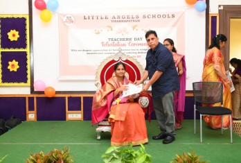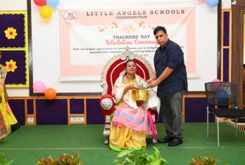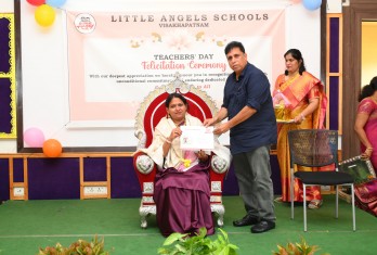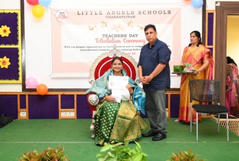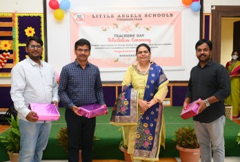 The morning assembly programme was hosted by the Green House teachers and it comprised of prayer, articles, speeches on Dr. Sarvepalli Radhakrishnan and role of teachers in shaping the society. Congratulating the great efforts of every teacher of Little Angels School, the Director Smt. Swathi applauded and the message of Our Founder and Chairman Shri. M.Venumohan was read out acknowledging the wonderful efforts of the staff in taking the school to the next level and also reminded the great responsibilities of the teachers. The Principal and Headmistress also greeted the teachers on this great occasion.