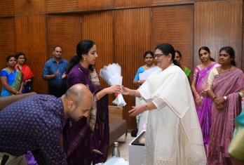 On 21st September, the second day of felicitation was organised in Hotel Daspalla. The programme commenced with a prayer followed by a speech by the Green House Coordinator and Principal Nafeesa Begum where she presented the life and works of both the Founders. On this day, the school Founder and Chairman Shri. M. Venumohan and Founder Director Smt. M. Ranganayaki were felicitated by the teaching and admin staff for inspiring everyone in the institution to do a splendid job and for their continuous support and guidance to everyone all these years and specially during the difficult days of pandemic. The young directors of Little Angels School Shri. Kranti Kiran and Smt. Swati also graced the event.