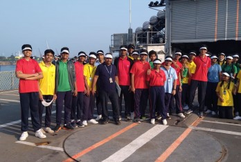 40 Senior NCC Boys and Girls of Little Angels School, MVP Colony, Visakhapatnam visited the Warship INS Airavat. They were accompanied by teachers Mr. Appa Rao, Mrs. Sakina Begum, Mrs. L. Uma and Mrs. V.V.S.N, Lakshmi.