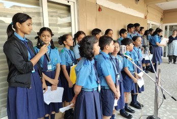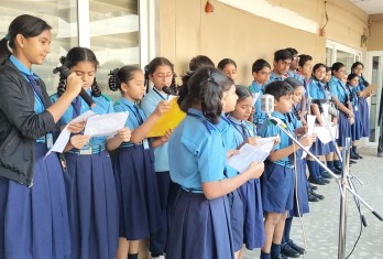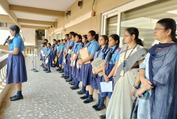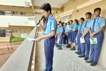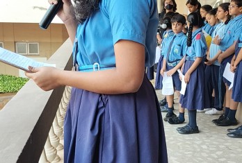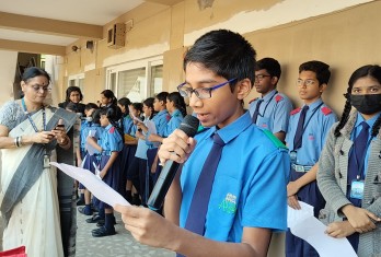Today a special assembly was conducted through the public addressing system as a part of National Constitution Day celebration. The programme started with the prayer by the school choir. Ashirwad Mahapatro of Class 10 read an article on the Importance of the Constitution Day.