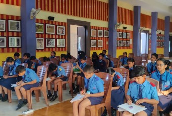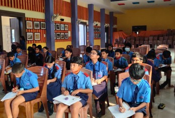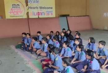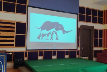 Final round was conducted in the auditorium where children were shown the shadow picture puzzles of different animals on the screen. They have observed the pictures, tried to identify the animals and later written them in the papers provided. Children were keen and eager to complete first. The children who could identify and write more number of pictures were selected as winners.