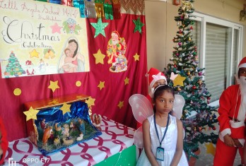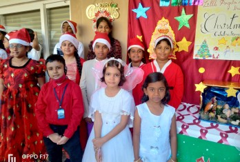 Christmas Eve is celebrated in Little Angels School on 24th December with pomp and splendour. A Special Assembly programme was conducted to celebrate the festive occasion. Balloons, Stars, Bells, Crib, Merry Christmas tags and a beautifully decorated Christmas tree created the spirit of Christmas celebrations. The essence of Christmas came alive with tiny angels with beautiful white dresses and Santa Claus with red and white waving and greeting everyone.