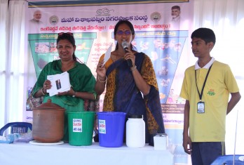GVMC and the Brand ambassadors of Swatch Bharat jointly conducted an awareness programme about cleanliness in the sector -1 Park on 04.09.2017. The Municipal Commissioner was the Chief guest. The Secretary and Correspondent of Little Angels School also attended the programme. The students of Little Angels School, of Class IX and the local residents of sector-1 participated . A demonstration of separating wet and dry wastes was given using flash cards. An easy method of making compost at home was also demonstrated. They motivated students to make compost at home. They informed the various steps taken by GVMC to reach the first position among cities as the ‘Cleanest City’ in the country. They encouraged students to become brand ambassadors, to spread awareness about waste management. The Secretary and Correspondent addressed the gathering, encouraged the audience to become volunteers and active participants to put Visakhapatnam on the Country map as the ‘Cleanest City’