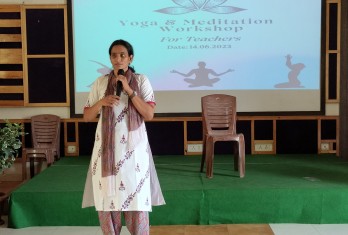 Meditation is relaxation and rejuvenates the body and the mind. With this aim, a workshop was conducted in the school on 14th June 2023, for the teachers of Kindergarten, Primary and Secondary classes. The workshop comprised of simple yoga asanas, breathing exercises and stretching exercises which can be easily done by the students and teachers. The teachers participated with full interest ,enthusiasm and eagerness.