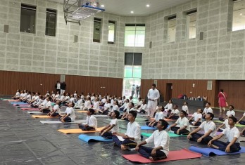 On this occasion, 64 students of Little Angels School from classes 7 to 9 and NCC Girl Cadets and Boy Cadets participated in the Yoga Programme organised by S3 Sports Arena in collaboration with Decathlon at the new VMRDA Indoor Stadium near Alwar Das Grounds MVP colony, Visakhapatnam.
