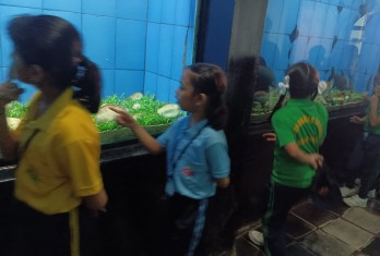 Educational trips are a way to learn about new places and their importance. The Class-3 teachers and students got an opportunity to go on an educational trip that to two different destinations. The trip was filled with exciting experiences and students learnt a lot. The first place visited was "Matsyadarshini". There the students learnt about a variety of fishes and tortoise, their origin, temperature, etc. Students were thrilled to watch them and recognize the differences, their movements and their scientific terms.