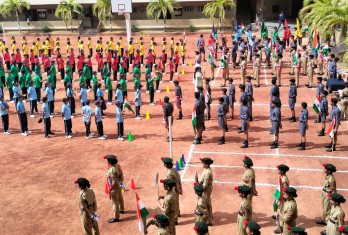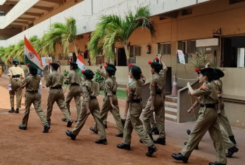 On the occasion of Quit India Day, a Flag March was conducted in the school from 9:00 am to 9:45 am. 50 - NCC Boys, 50 – NCC Girls, 24 – School Captains took part in the Flag March. The students of Class 8 were also present in the school to witness the event.