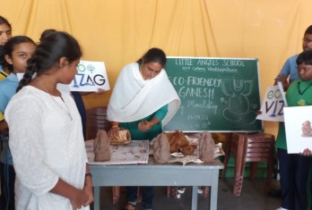 The objective of the workshop is to instill a sense of environmental responsibility among students and educate them to celebrate the festival in a sustainable manner and avoid harming the environment by using idols made of plaster of paris. Students were told to adopt more eco-friendly practices, such as making their own idols using mud clay, turmeric, or flour.