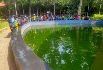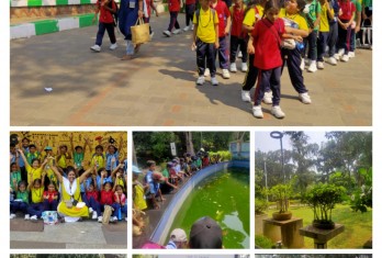 All the students enjoyed the view of entrance with huge trees, climbers, creepers, shrubs, herbs and many more. They enjoyed their snacks, shared with their peer group and had fun in the park. They all enjoyed playing passing the ball and Dodgeball and showcased their talent in the form of dance and songs. Soon after that, all moved towards aquarium, where everyone were thrilled to see variety of fishes, especially gold fish. Moving towards Bonsai plants, children were amazed by the sizes of the plants. Science teacher explained about the various plants, name, age and the way they are taken care of.